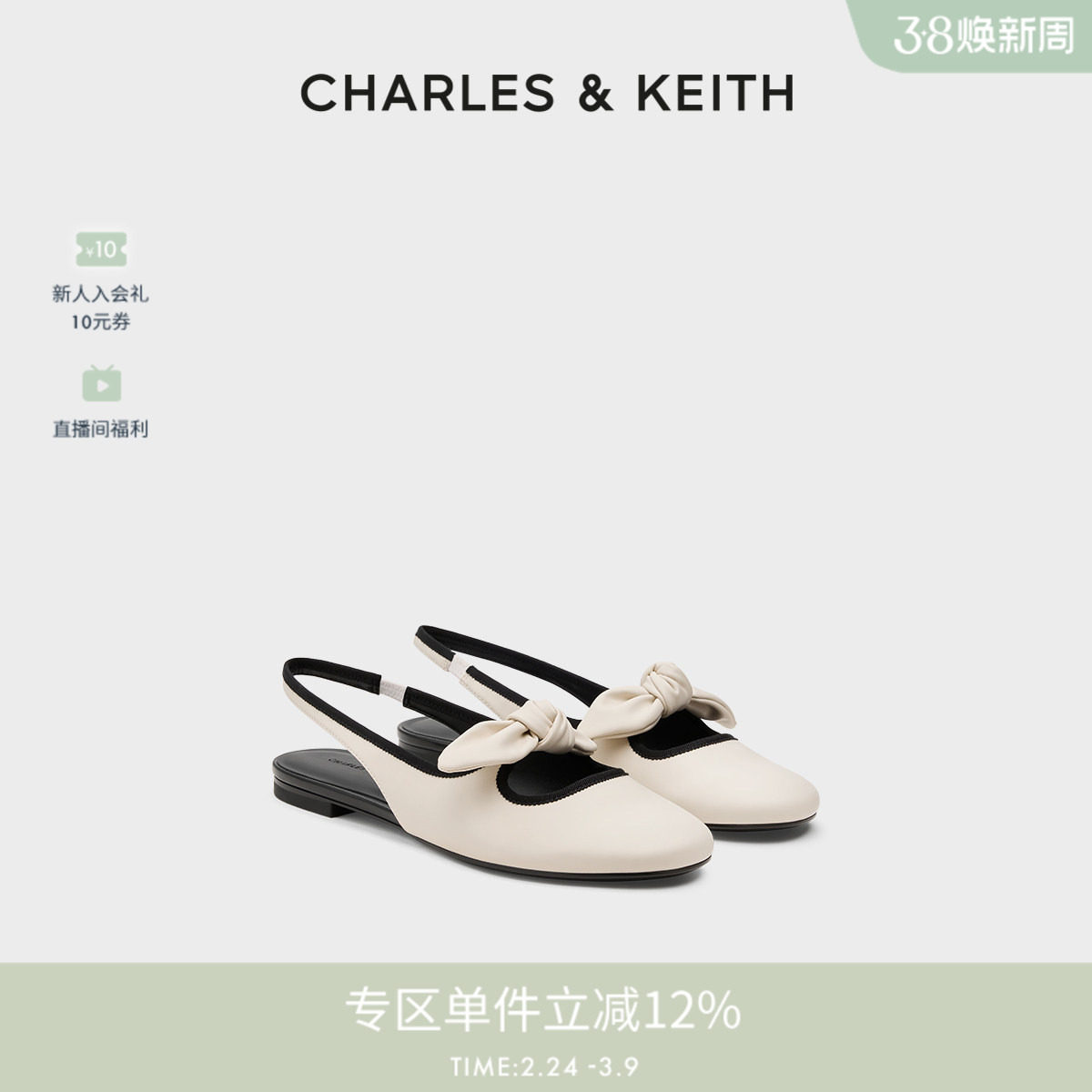 CHARLES&KEITH春季女鞋CK1-70580278圆头平底蝴蝶结凉鞋玛丽珍鞋