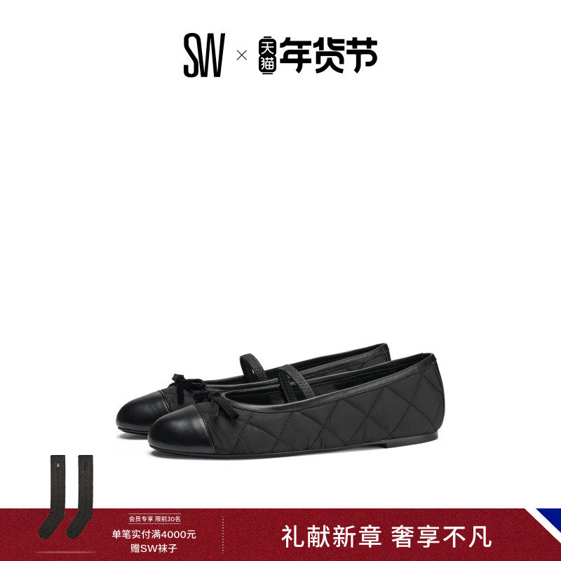【早春新品】SW PRIMA QUILTED MARY JANE系带蝴蝶结圆头平底鞋女
