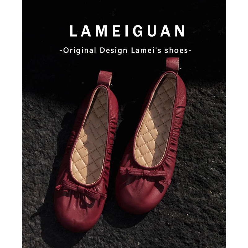真皮蝴蝶结单鞋女春秋款软皮平跟芭蕾鞋小圆头平底鞋舒适软底女鞋