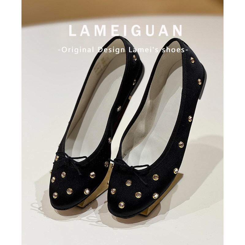 复古水钻蝴蝶结圆头芭蕾舞鞋女2026春季新款黑色法式浅口平底单鞋