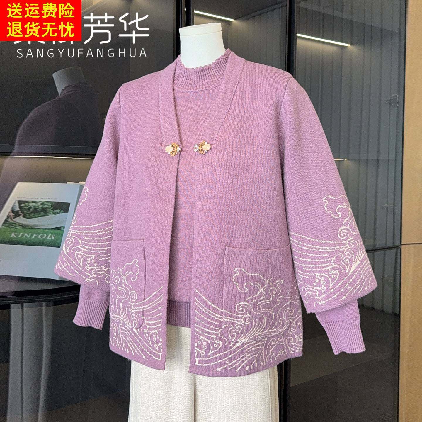 2025新款妈妈秋装国风针织两件套新中式50岁60中老年女装毛衣外套