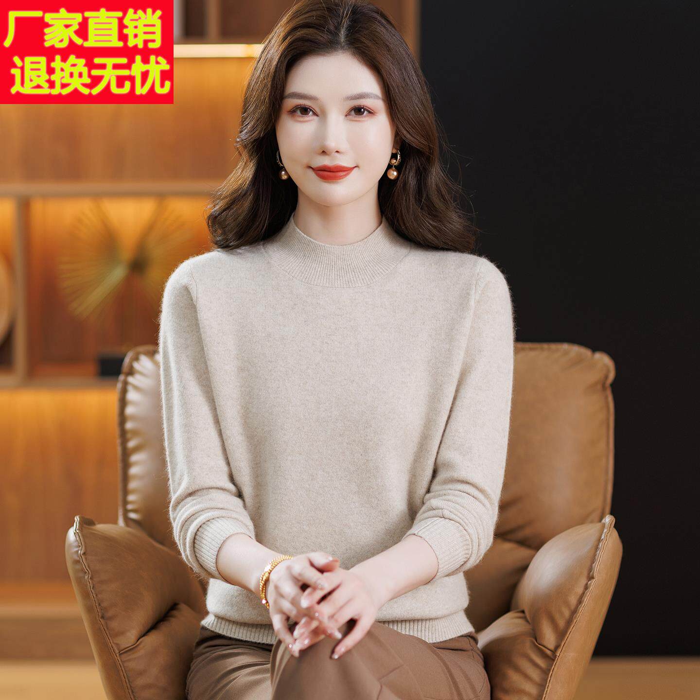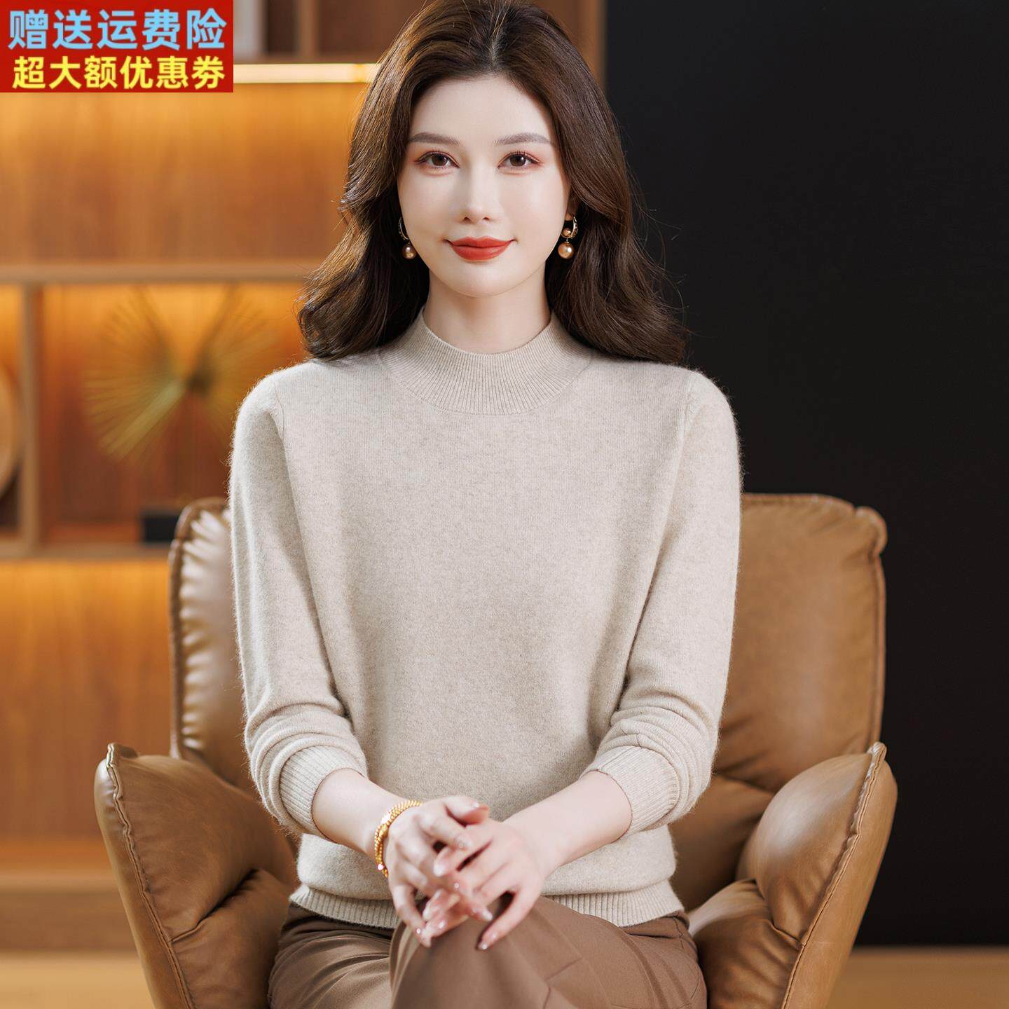 纯色妈妈装套头羊绒衫女半高领针织打底衫秋冬新款中老年女装毛衣