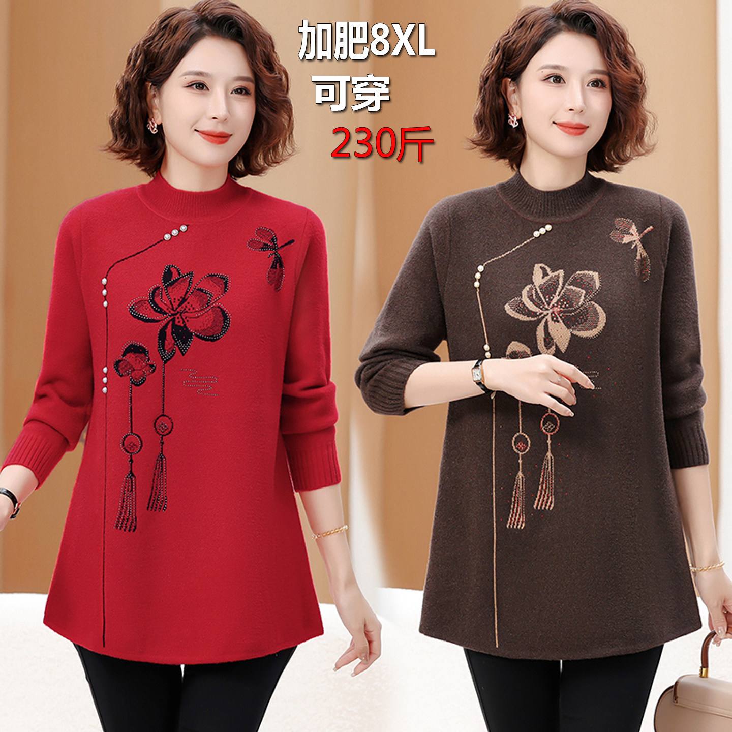 中老年女装毛衣打底衫中长款宽松大码妈妈装秋冬保暖洋气针织上衣