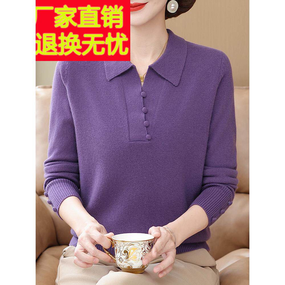 妈妈装秋装翻领长袖针织衫2025新款洋气中老年女装毛衣薄款上衣服