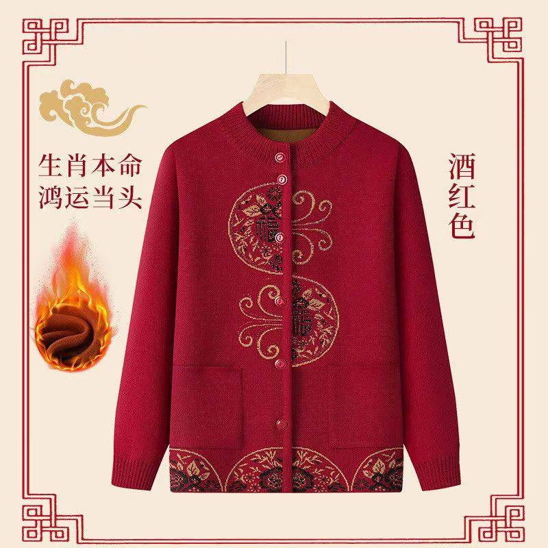 中年妈妈秋冬羊毛衫中老年女装毛衣安可拉红色2025蛇年本命年衣服