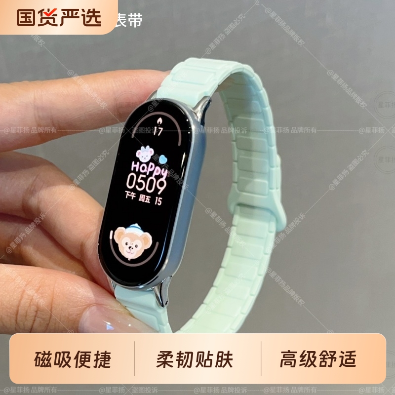 适用小米手环10/9手表带链8nfc版硅胶磁吸7系列手腕带6手表链高级感5新品女生陶瓷款夏天4八九代智能运动新款