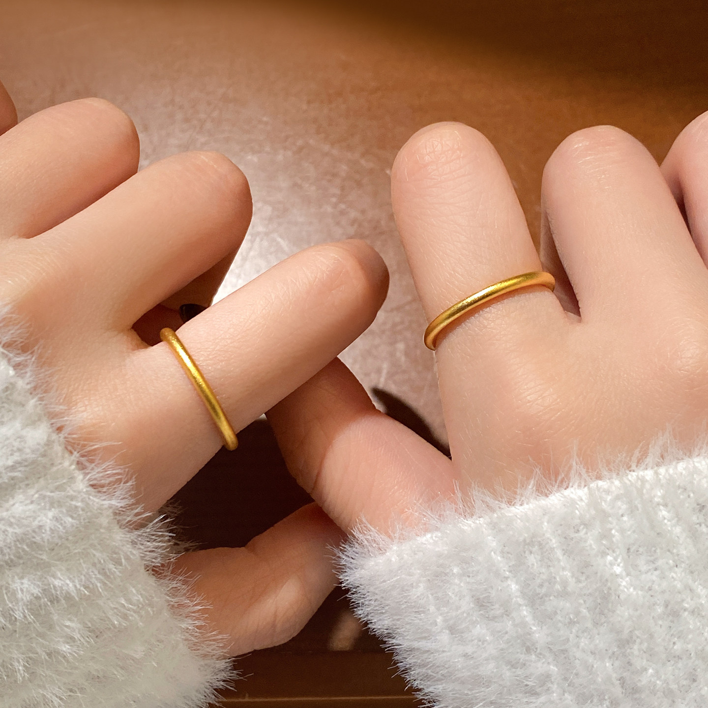 三生三世光面黄金素圈戒指足金包银对戒磨砂戒指情侣戒指生日礼物