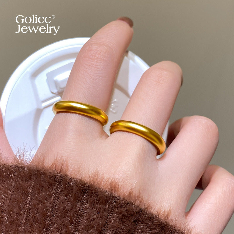 旭平通勤传承不锈钢素圈磨砂仿黄金色戒指简约易搭时尚款约2mm