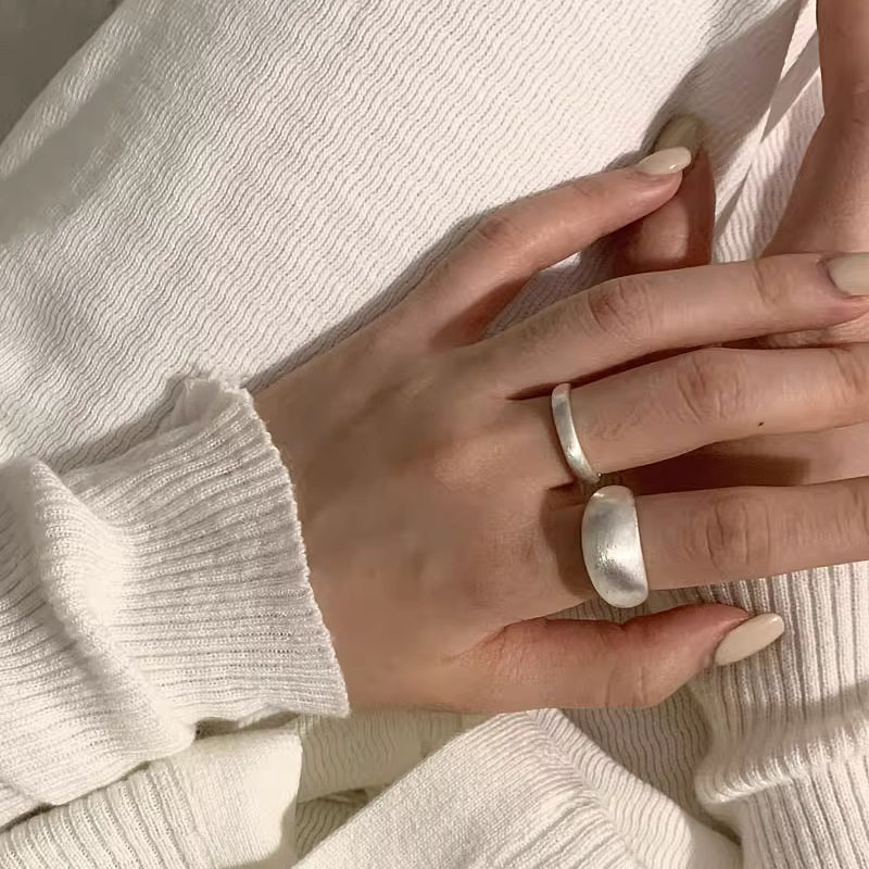 旭源 S925纯银拉丝磨砂戒指椭圆素圈叠戴指环ins冷淡极简风开口戒