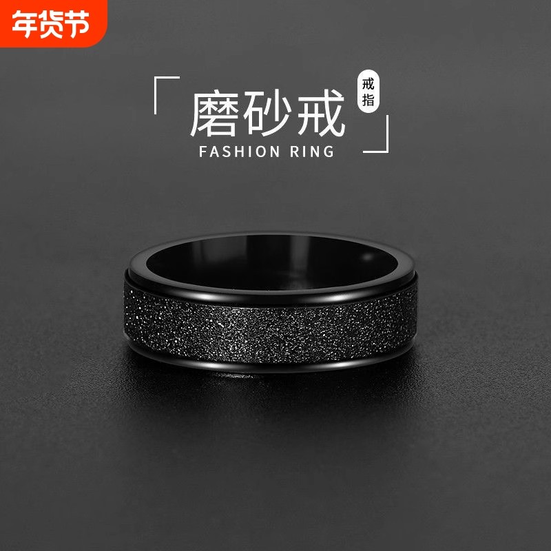 钛钢戒指 黑色磨砂戒指男士指环ins不掉色高级感小众时尚潮流百搭