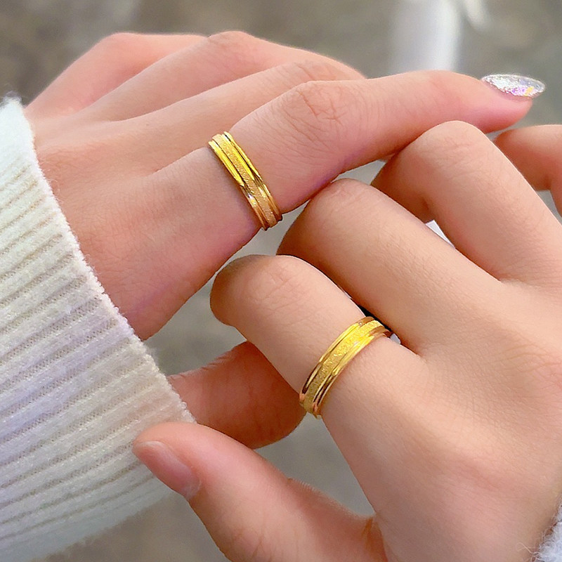 ins冷淡风钛钢金色磨砂戒指男女chic时尚个性百搭网红潮流不掉色