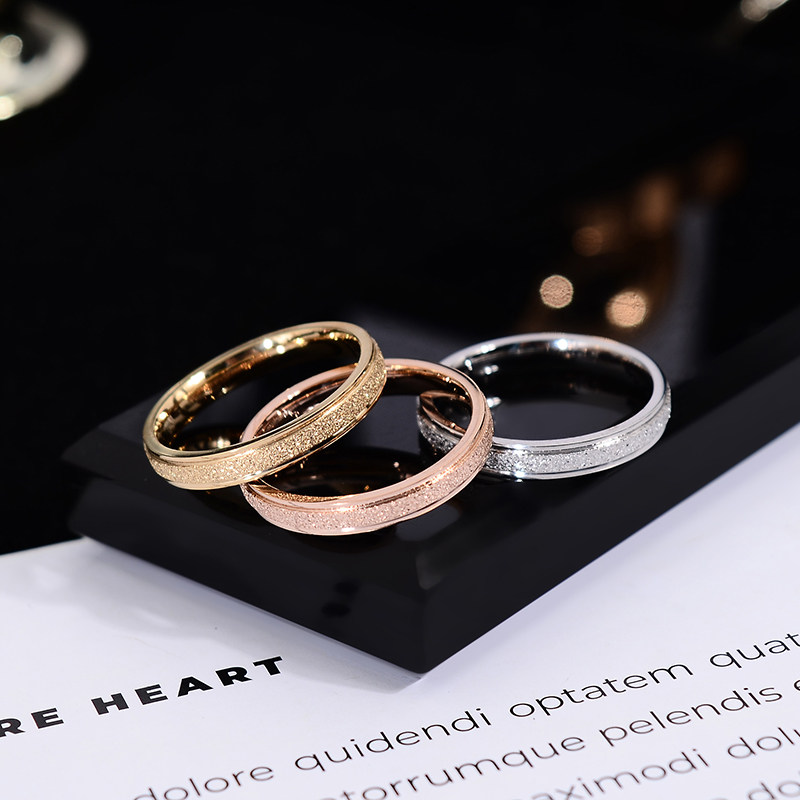 时尚气质钛钢玫瑰金磨砂戒指情侣彩金食指戒男女尾戒保色素圈质感