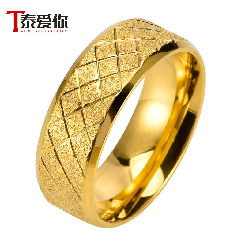 泰爱你8MM宽金色磨砂戒指潮男个性小众轻奢钛钢指环简约配饰百搭