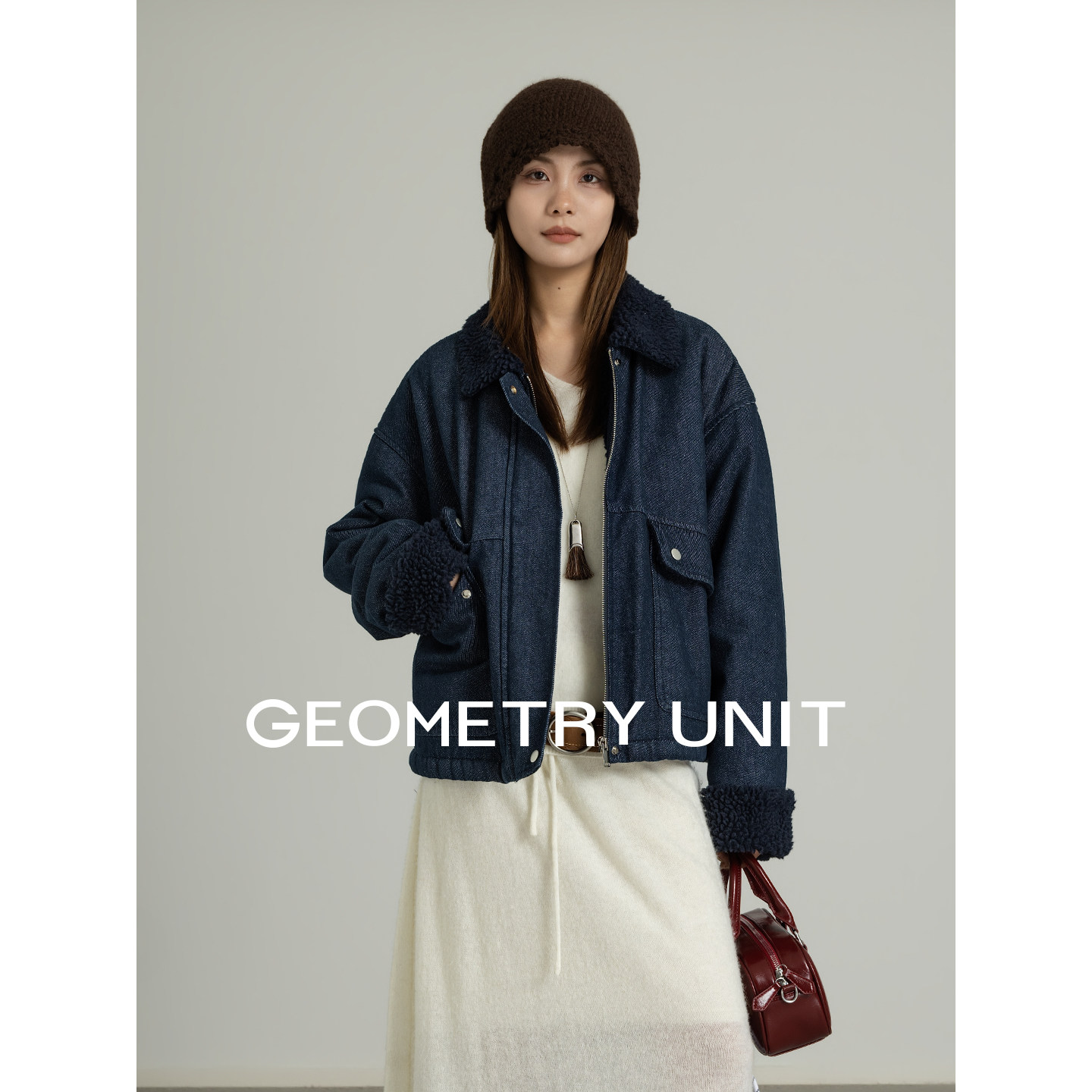 - 羊羔毛短款外套女