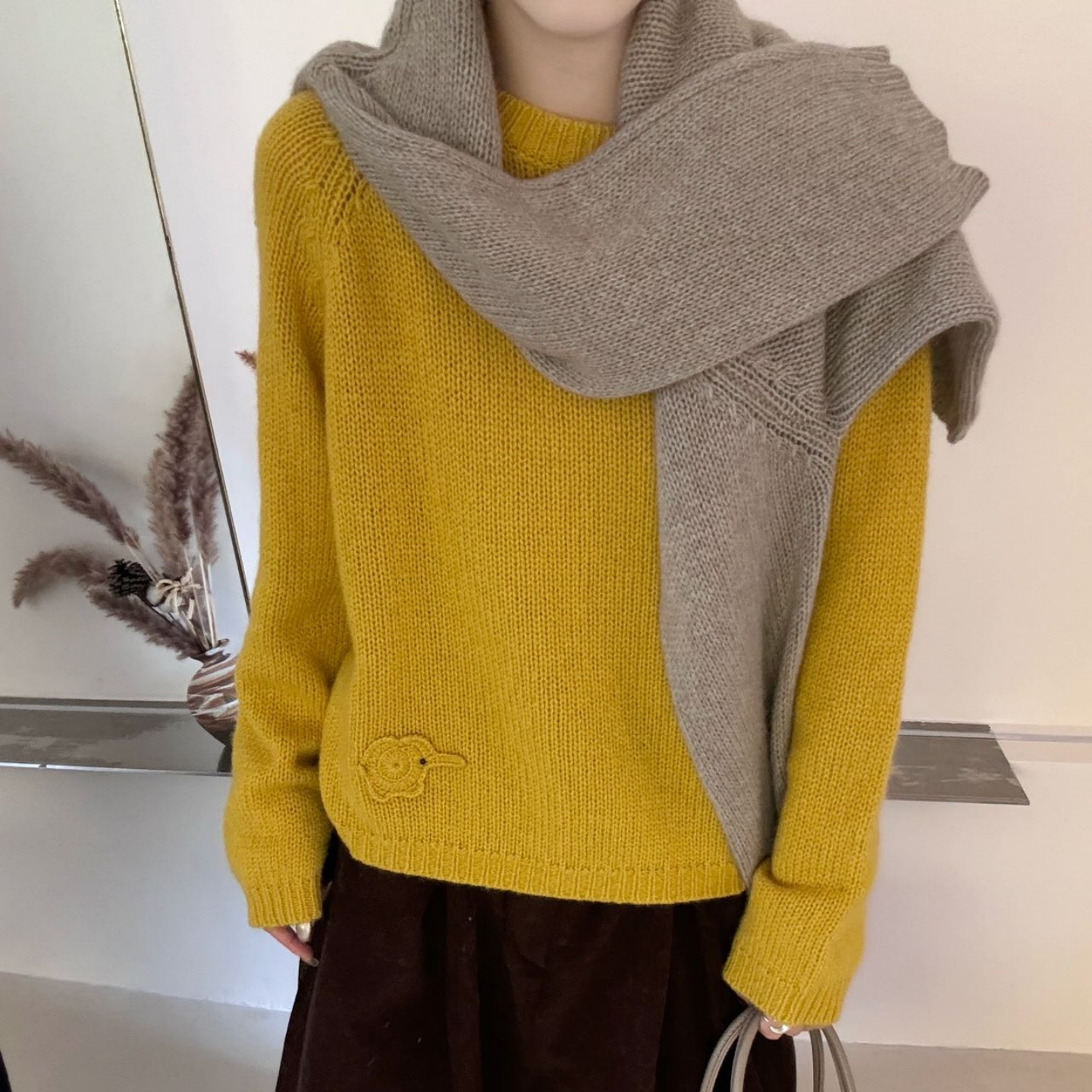 此外 圆领基础版刺绣套头毛衣女2025冬季新款宽松韩版加厚针织衫