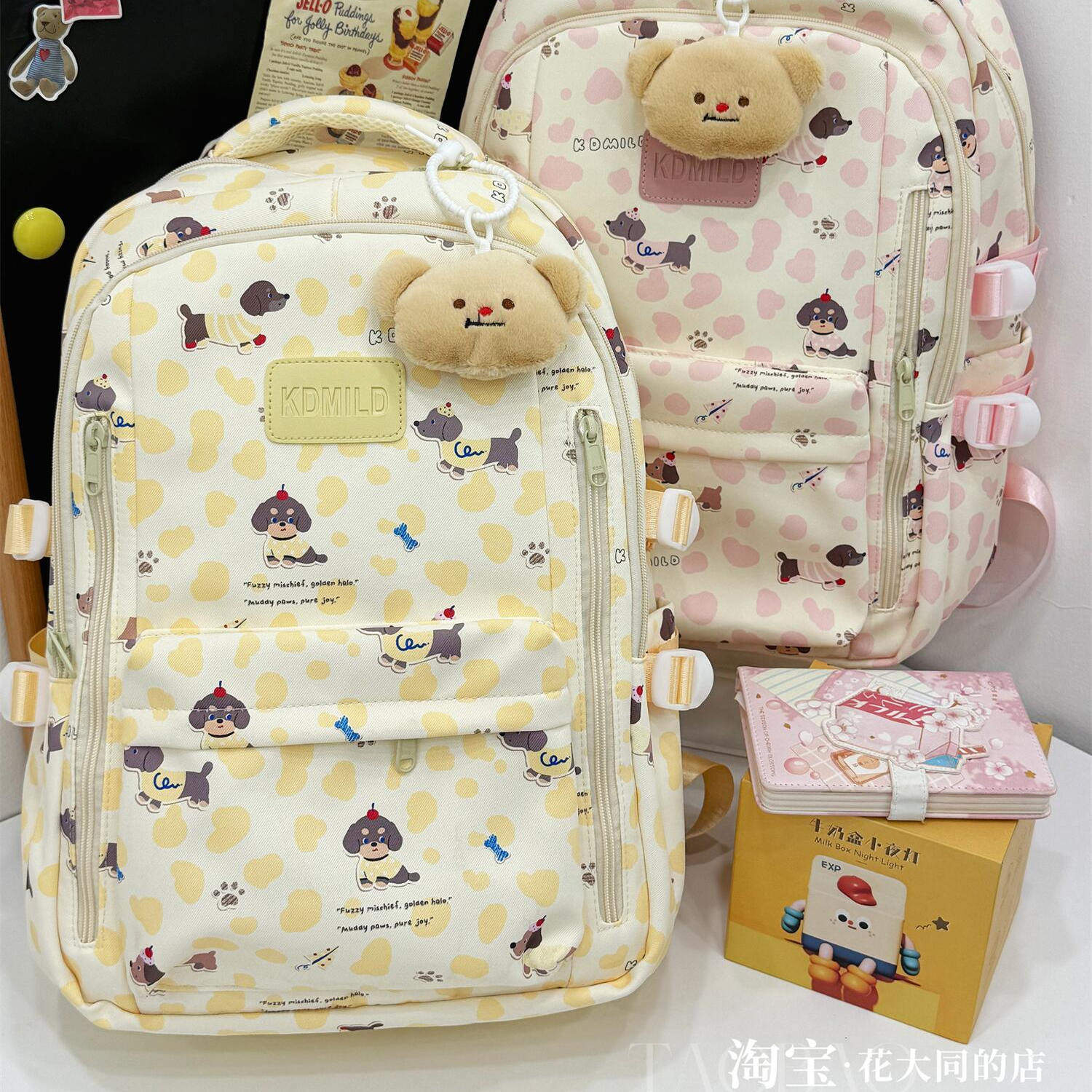 韩系卡通腊肠狗豹纹双肩包女大容量初中生大学生书包通勤电脑背包
