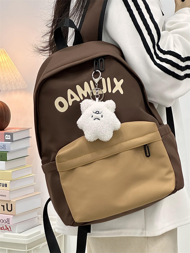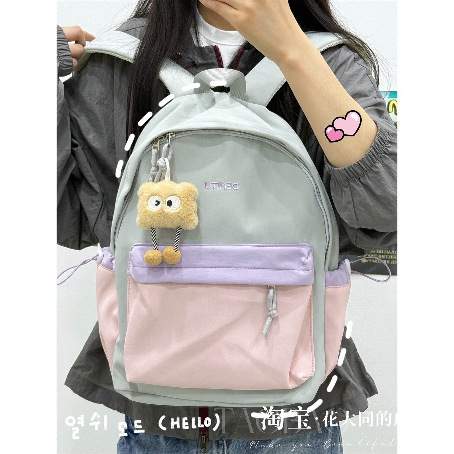 高颜值撞色双肩包女大容量高中生大学生背包轻便补习包小学生书包