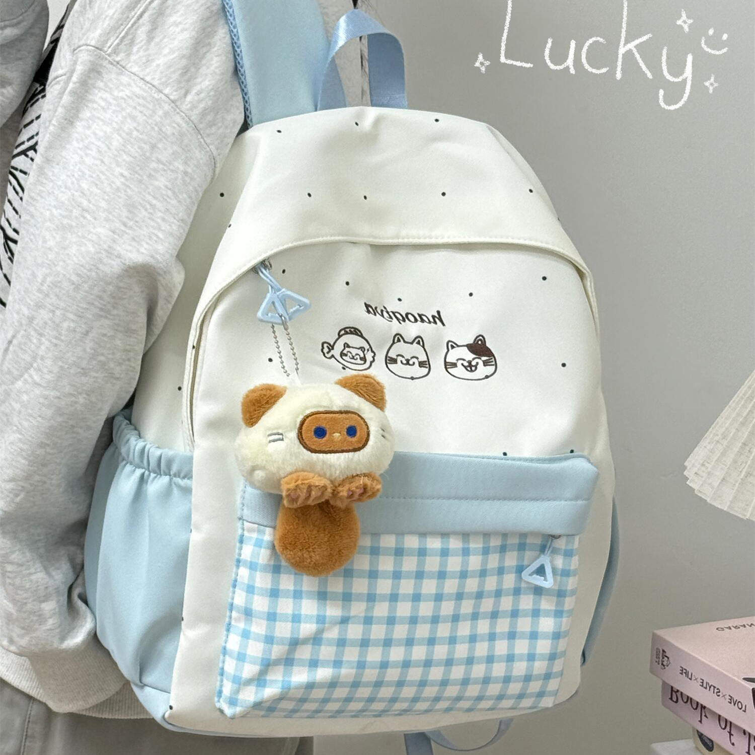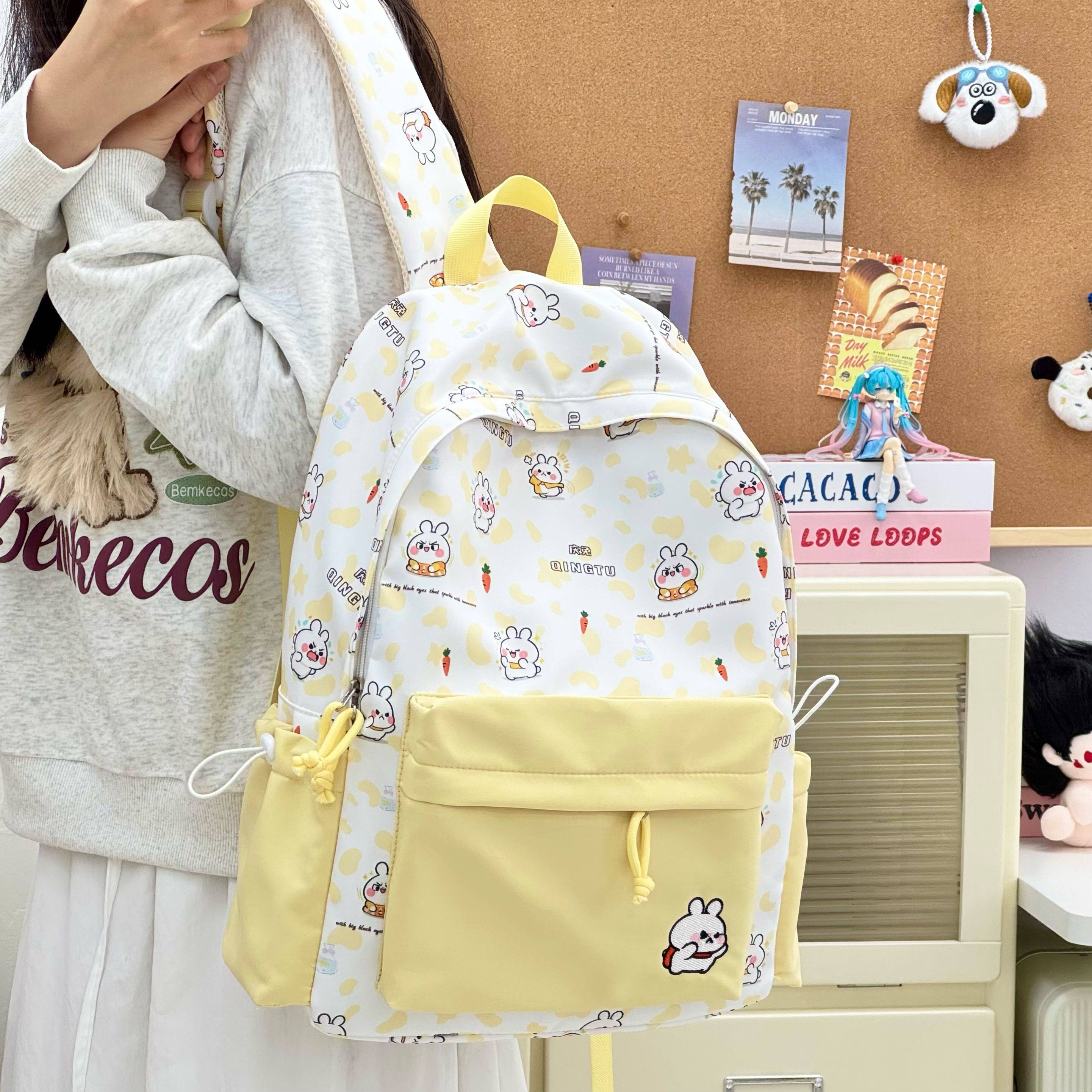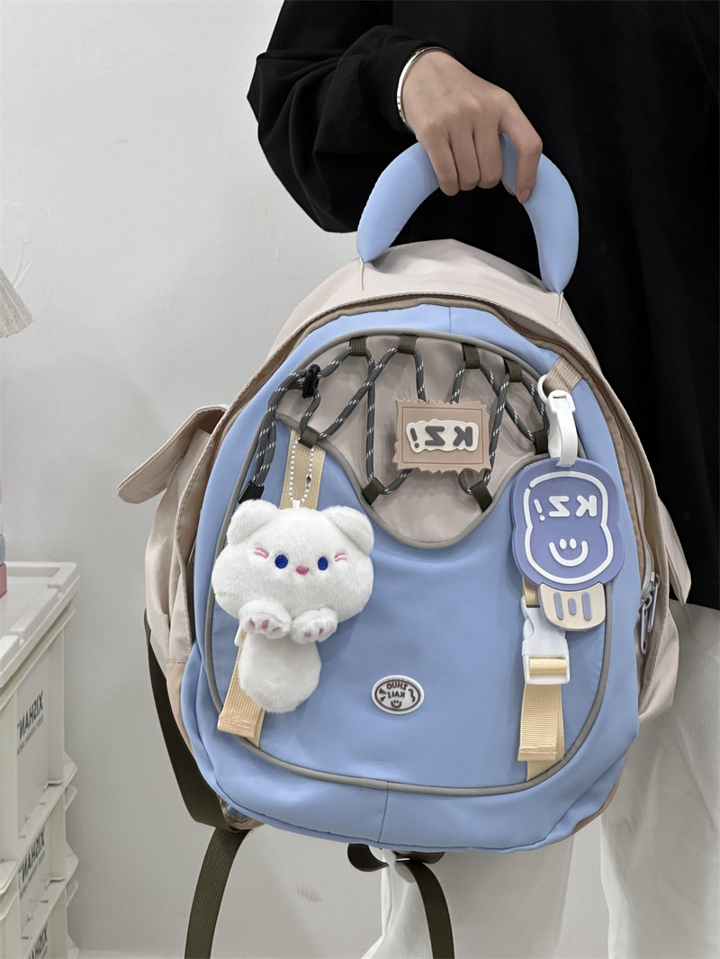 高颜值可爱卡通双肩包女 大容量撞色初中生小学生书包小众学院风
