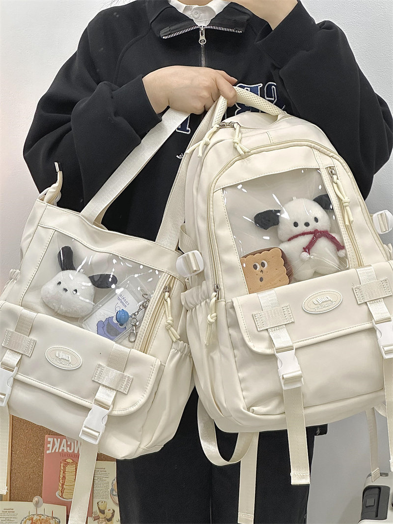 高颜值大容量多层双肩包女小众设计透明痛包百搭高中生初中生书包