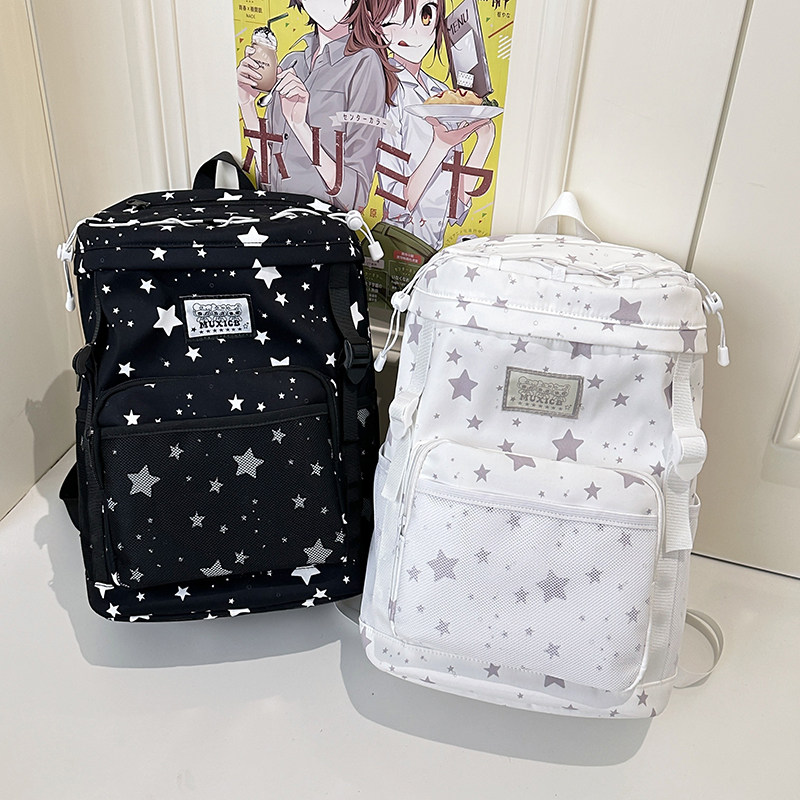 高颜值小众设计星星双肩包女大容量撞色旅行包男大学生初中生书包