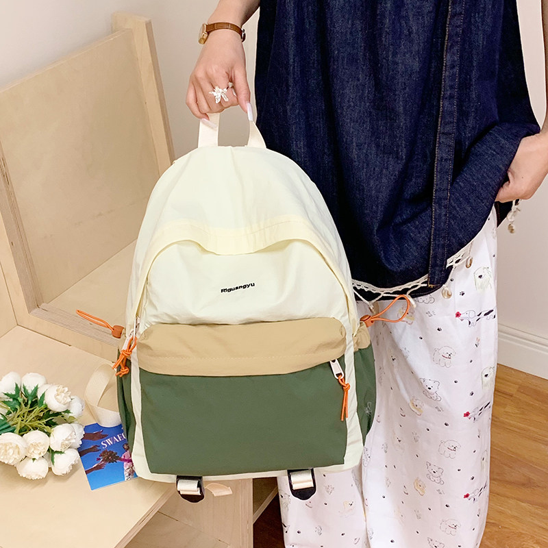 双肩包女高颜值拼色背包学生上课大容量书包轻便户外旅行包电脑包