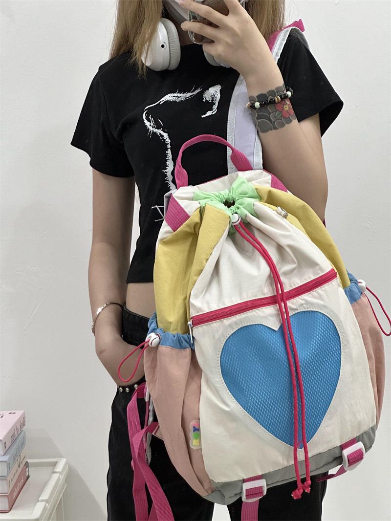 2024新品抽绳束口袋女可爱双肩单肩斜跨多功能防水轻便旅行背包
