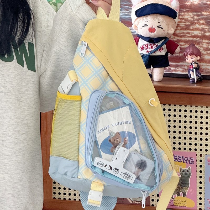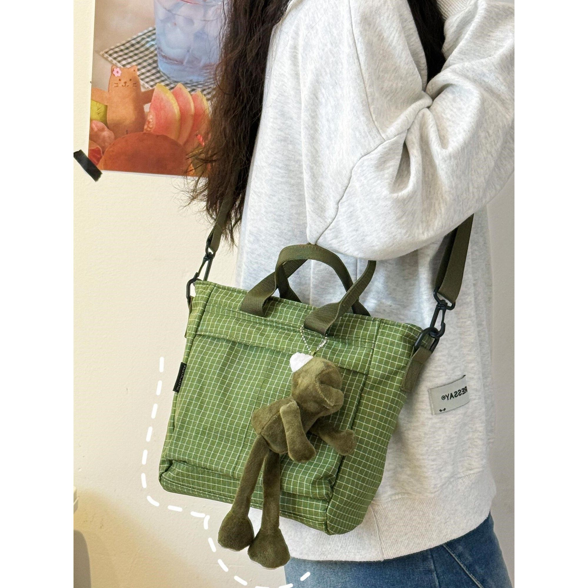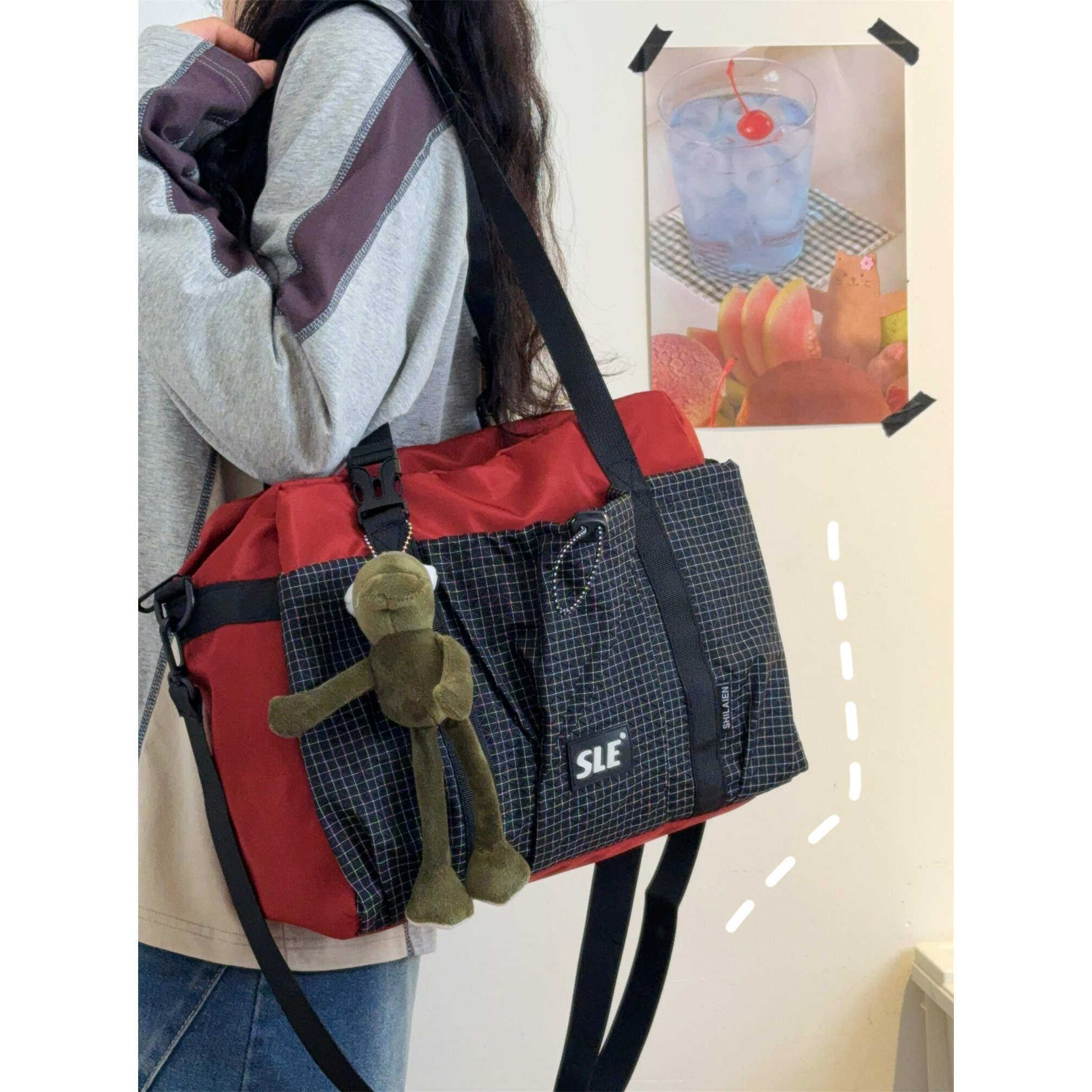 斜挎包女日系ins格纹手拎包简约大容量单肩包轻量化户外旅行包男