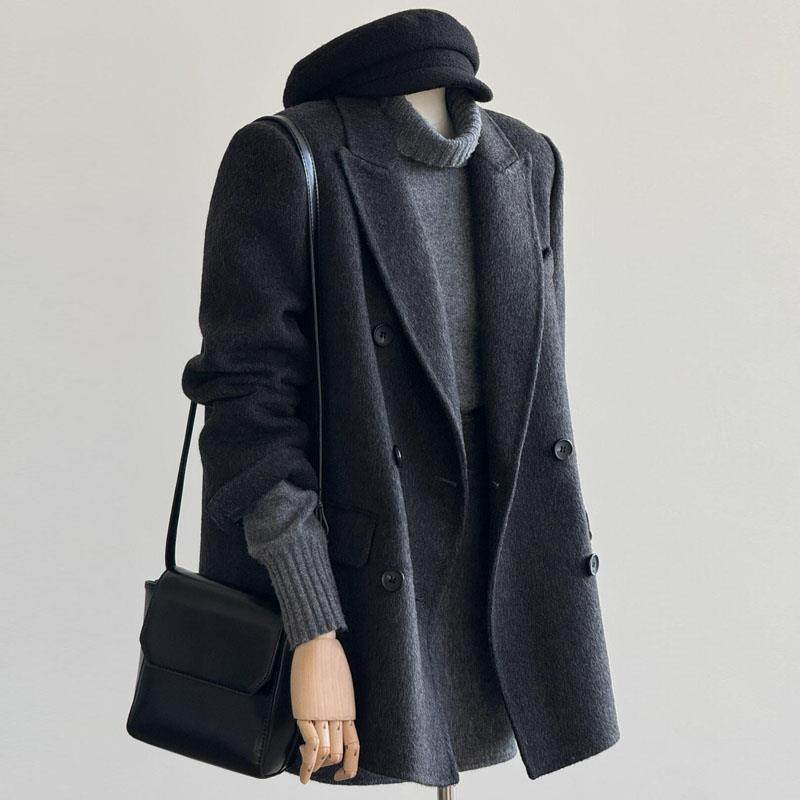 大喜自制【现货】曼哈顿大衣正肩西装毛呢双面羊绒羊毛呢短款外套