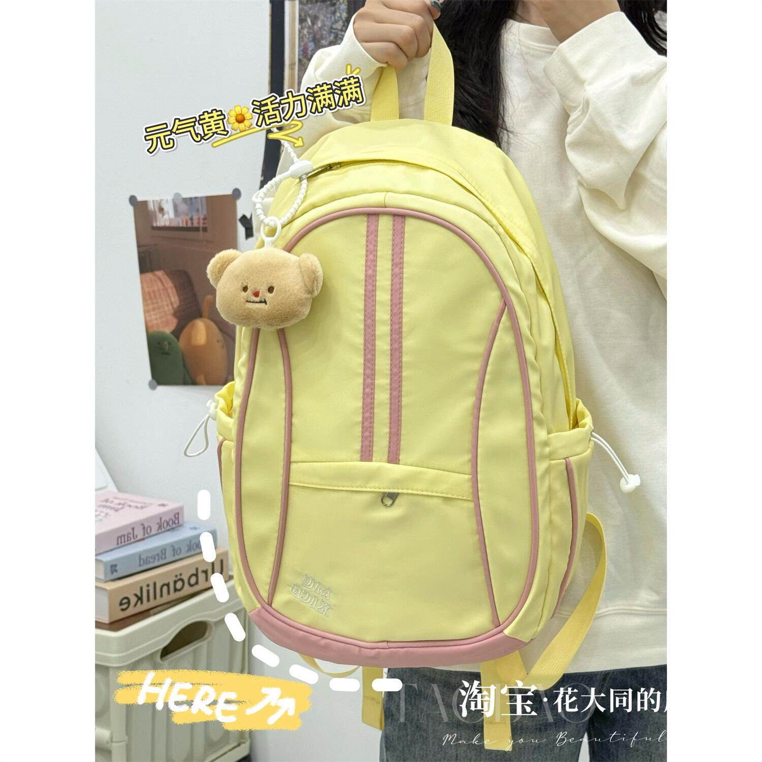 2024新品尼龙超轻简约撞色大容量初中生高中生ins风百搭双肩背包