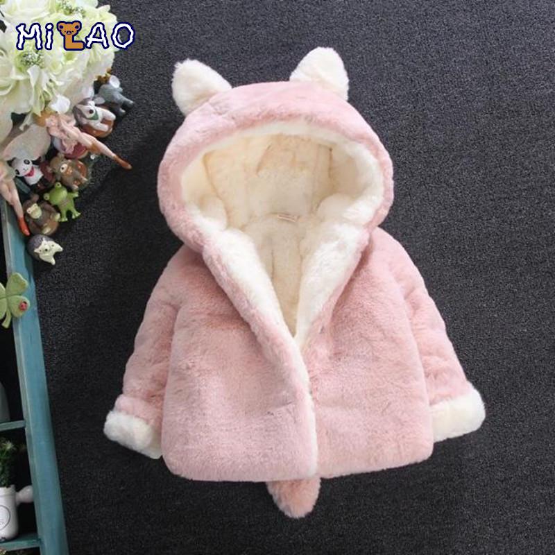 加绒加厚童装0-1-2-3岁女宝宝棉衣一岁婴儿兔毛外套女童兔毛冬装