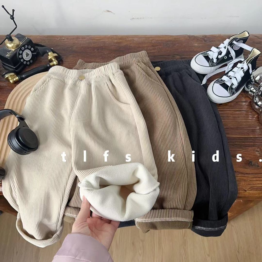 儿童秋冬韩版灯芯绒直筒裤1岁宝宝加绒阔腿裤男女童冬装加厚裤子2