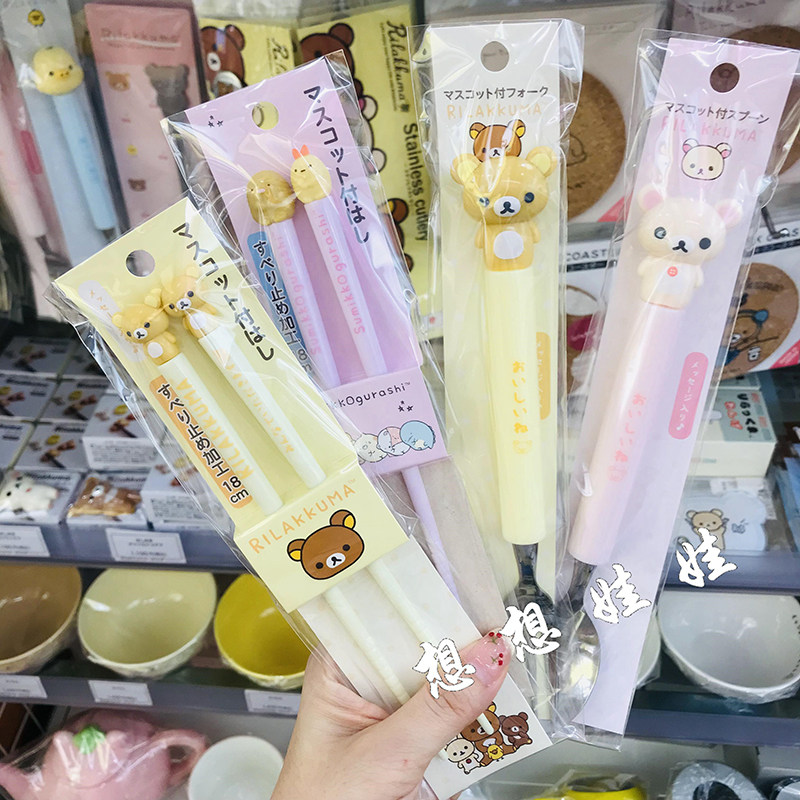 现货rilakkuma日本正版轻松熊3D公仔不锈钢勺子叉子餐具筷子ZAKKA
