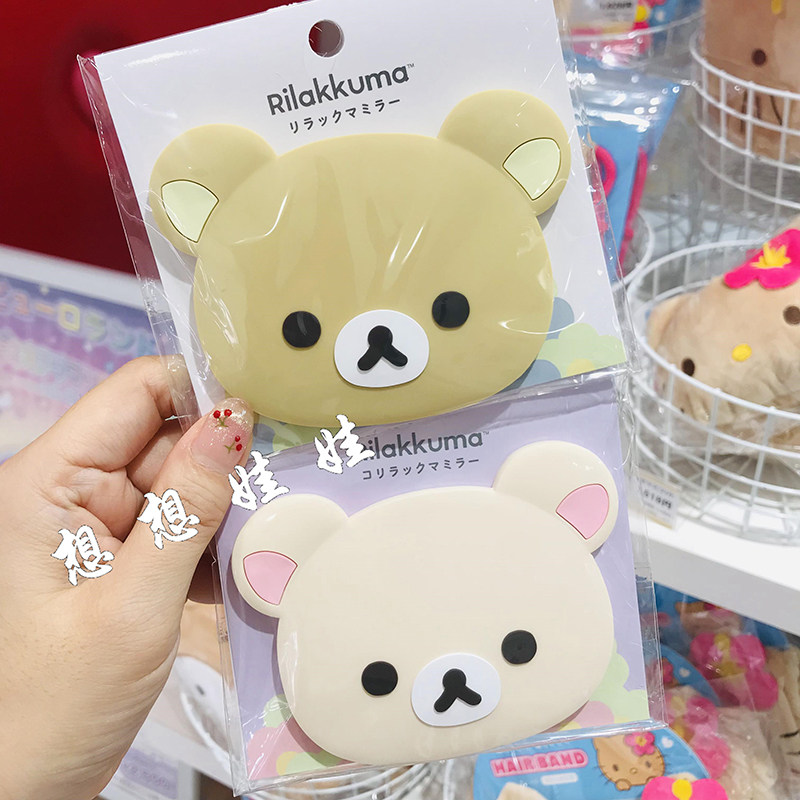 现货日本轻松熊Rilakkuma熊哥熊妹公仔便携旅行化妆小镜子随身镜