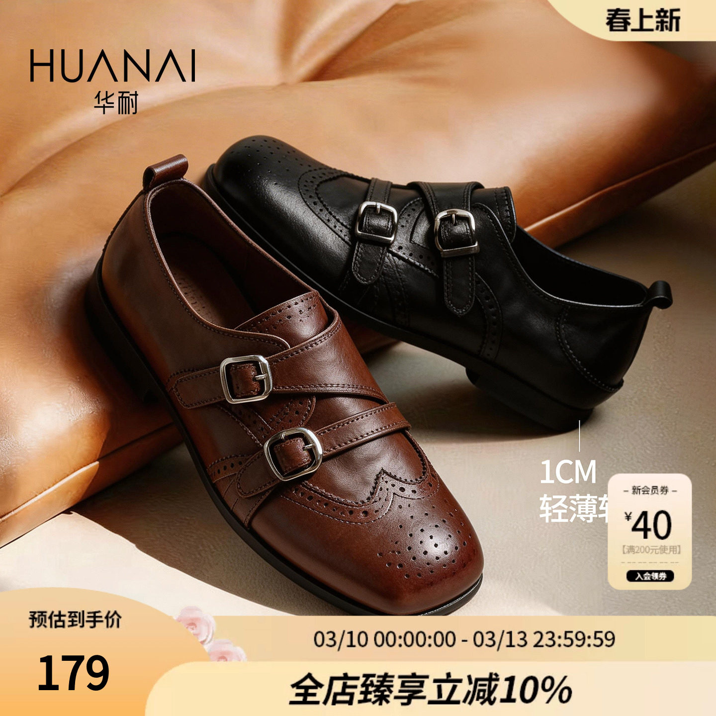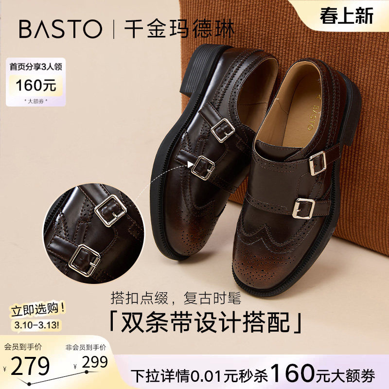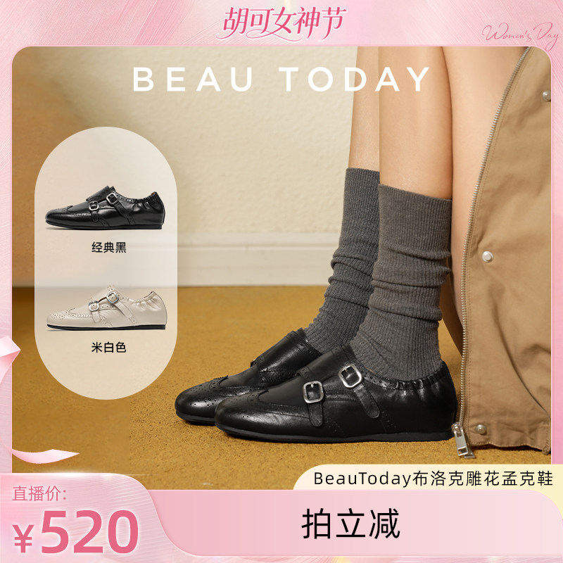 【胡可推荐】BeauToday乐福鞋女2026新款春孟克鞋布洛克雕花女鞋