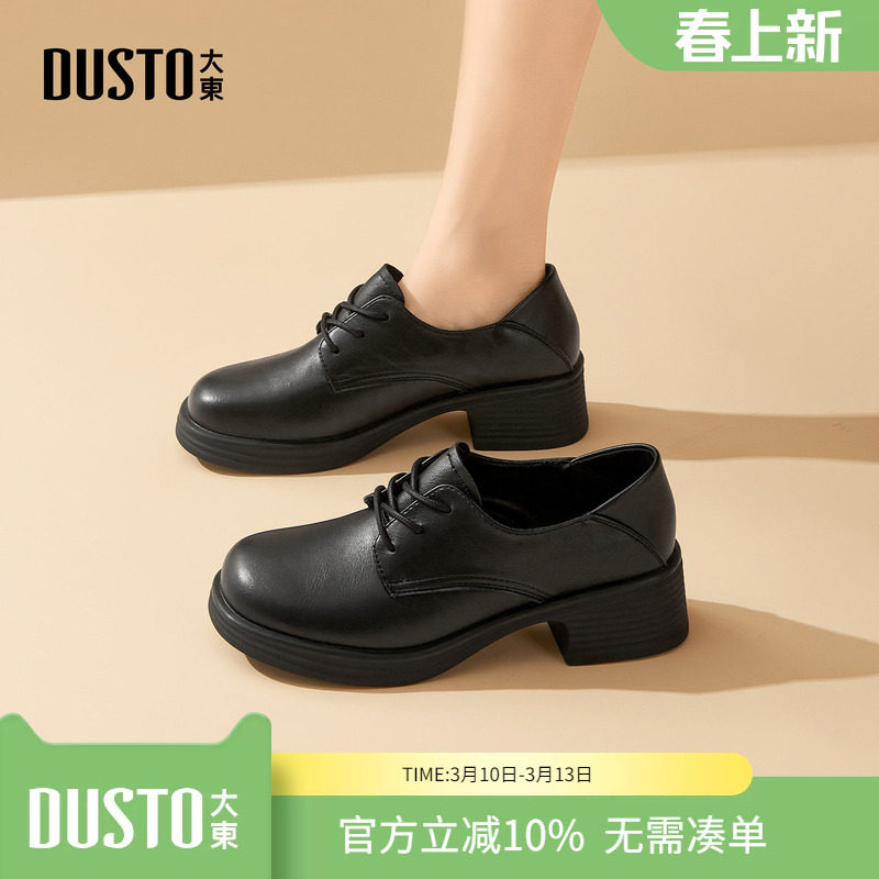 大东ddS英伦风小皮鞋乐福鞋2026春季新款深口女鞋系带布洛克单鞋