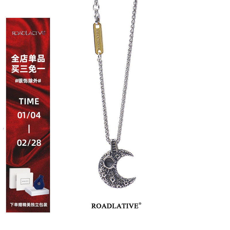ROADLATIVE 原创设计国潮嘻哈风特色宇宙钛钢月亮项链男饰品