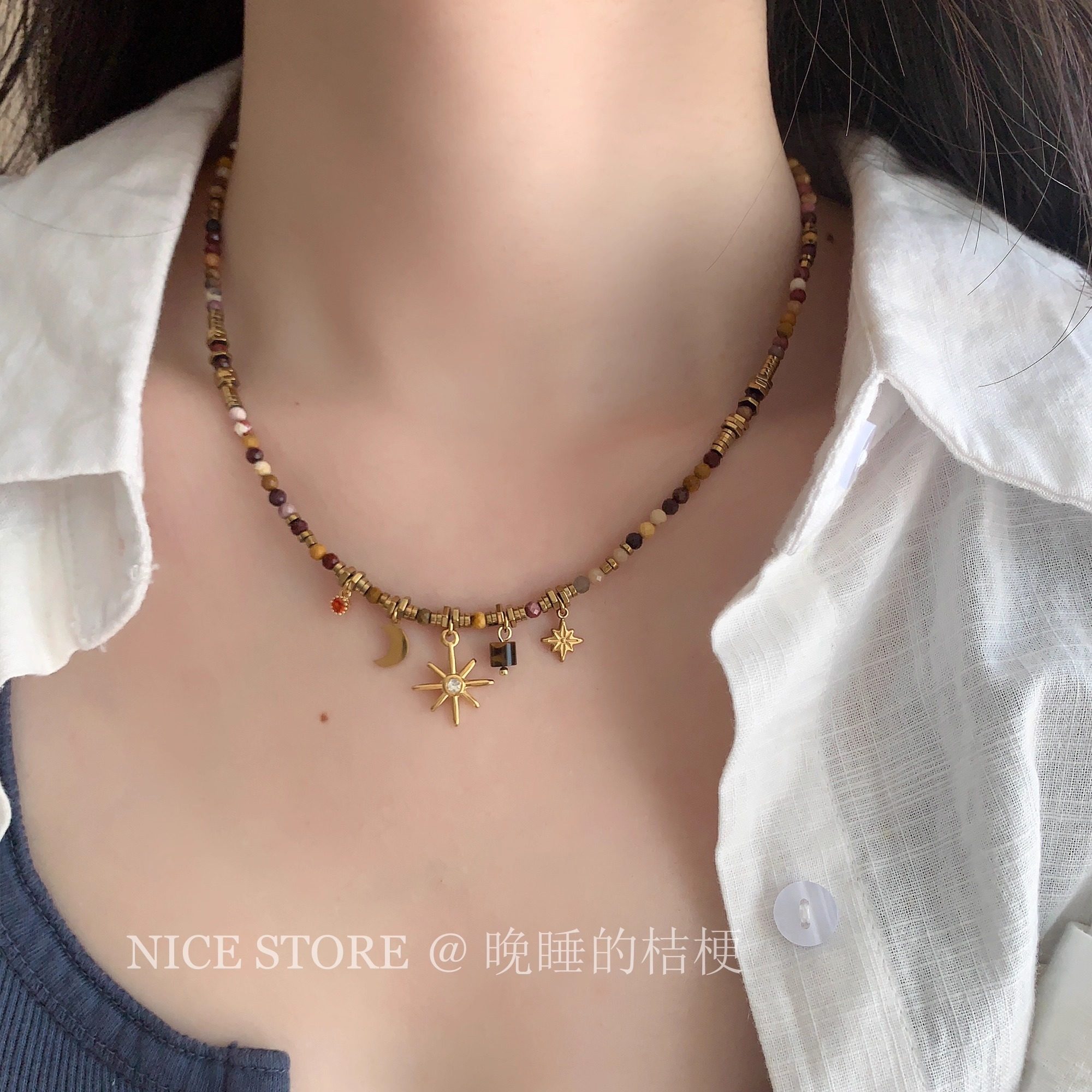 晚睡的桔梗「小星星」新中式沙金星星月亮项链博主同款气质毛衣链