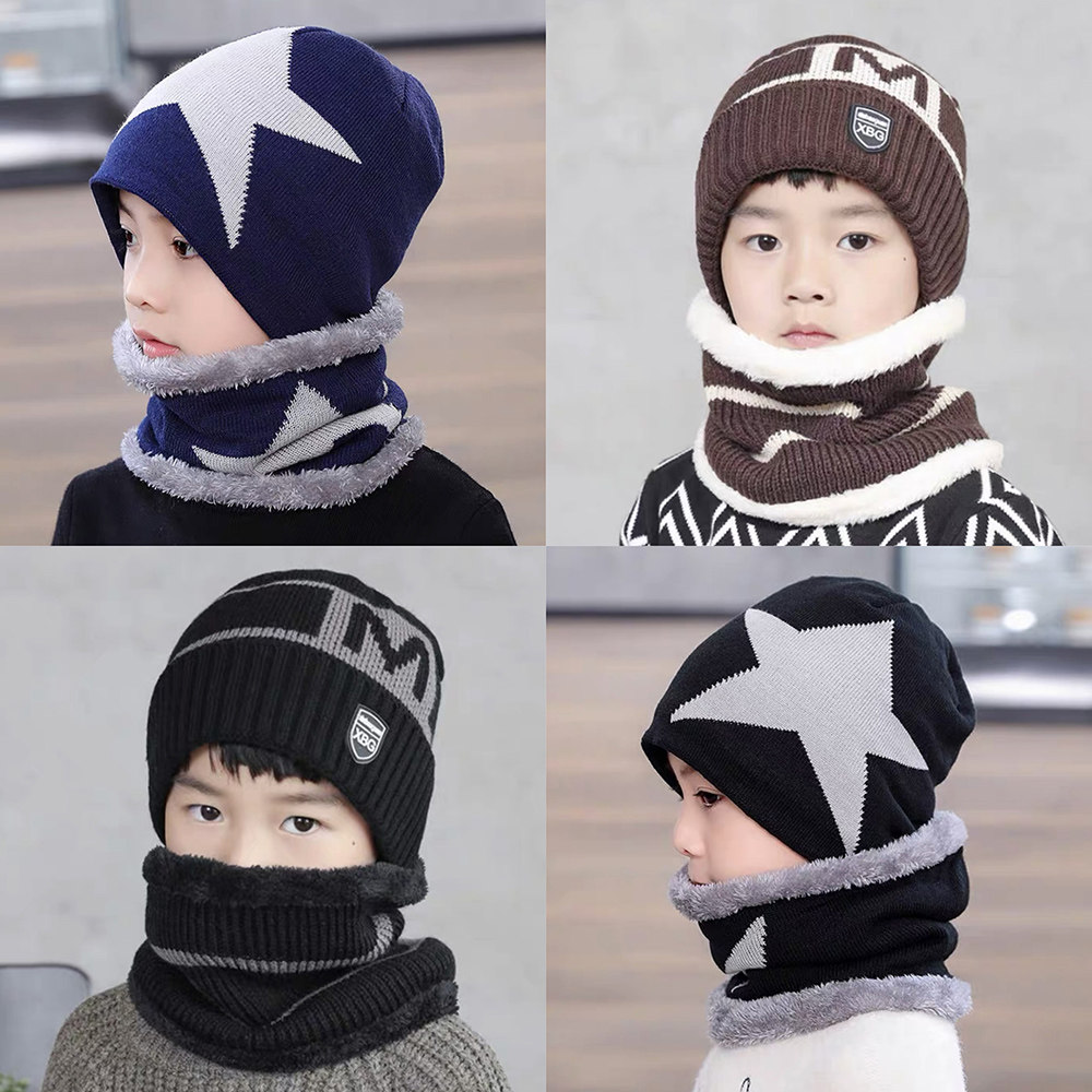 儿童帽子冬季韩版毛线帽围巾套装加厚保暖男童宝宝户外防风套头帽
