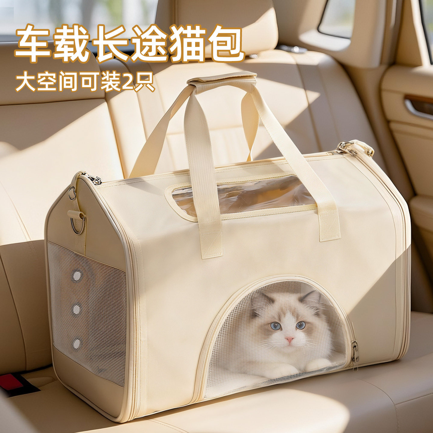 车载猫包外出便携大容量两只猫咪防应激斜挎手提猫窝宠物狗狗背包