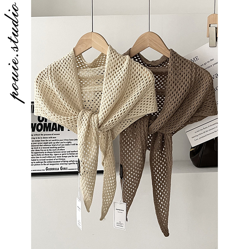 简约纯色镂空网眼三角披肩女秋冬新款时尚百搭高级感保暖围巾围脖