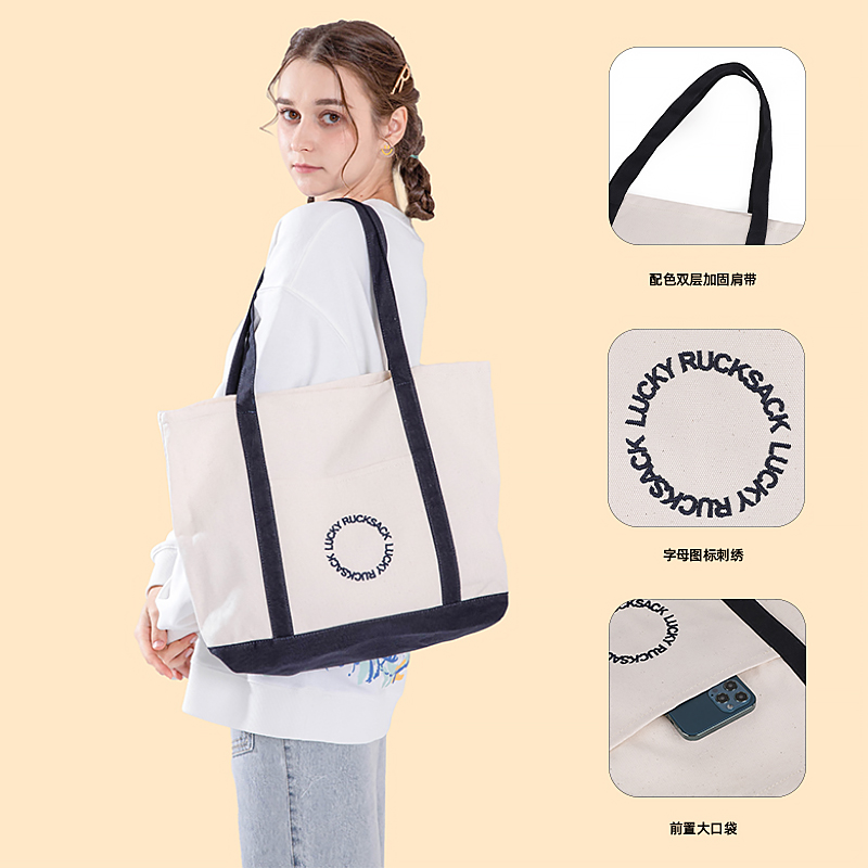 韩国简约字母法式帆布包ins博主韩风单肩休闲购物包单肩托特包女