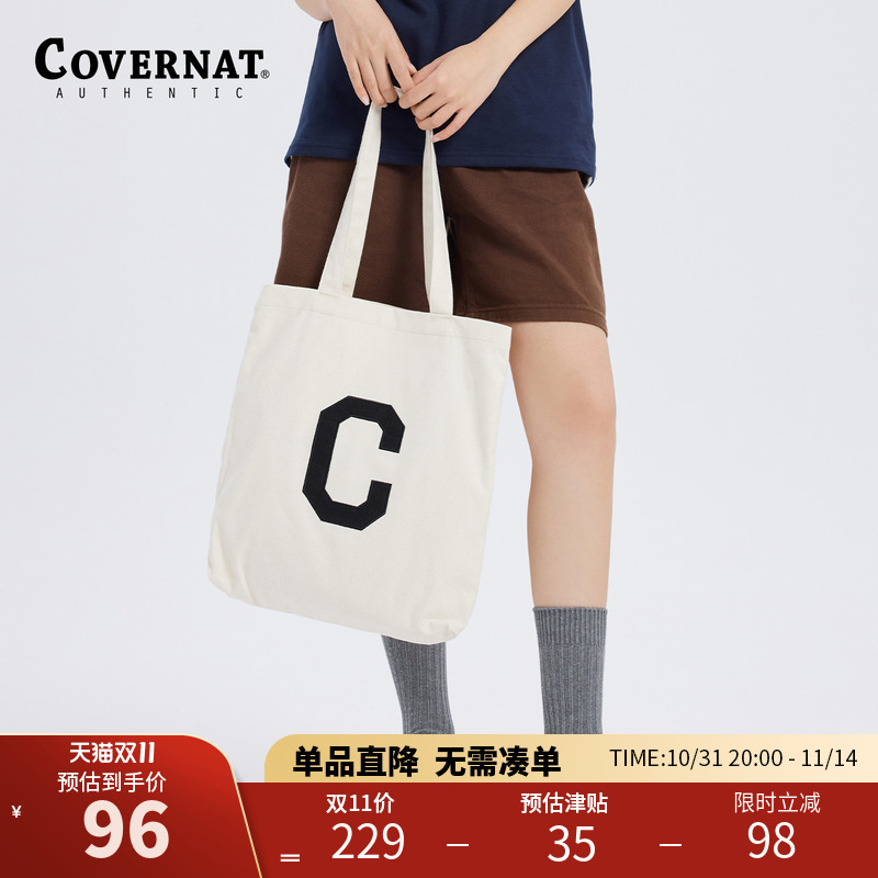 covernat韩国潮牌简约字母手提包经典款基础帆布包刺绣单肩包休闲