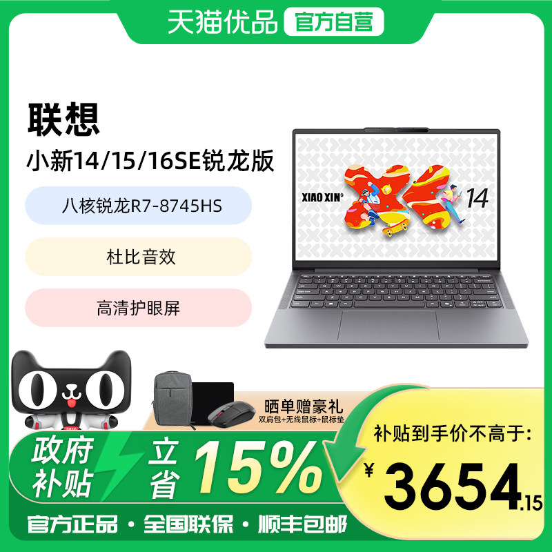 【政府补贴15%】联想小新14/15/16SE 锐龙 R7-7845HS轻薄金属机身学生办公设计制图高清屏笔记本电脑手提网课