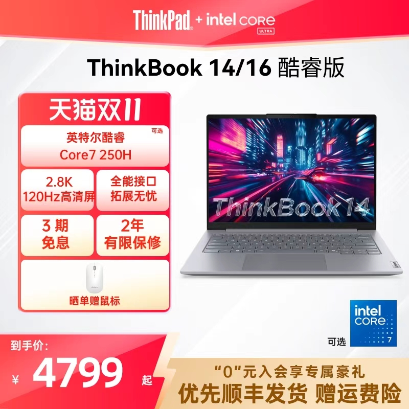 【爆款推荐】ThinkPad联想ThinkBook14/16英特尔酷睿5/7/Ultra 1T轻薄学生商务办公游戏手提笔记本电脑官方
