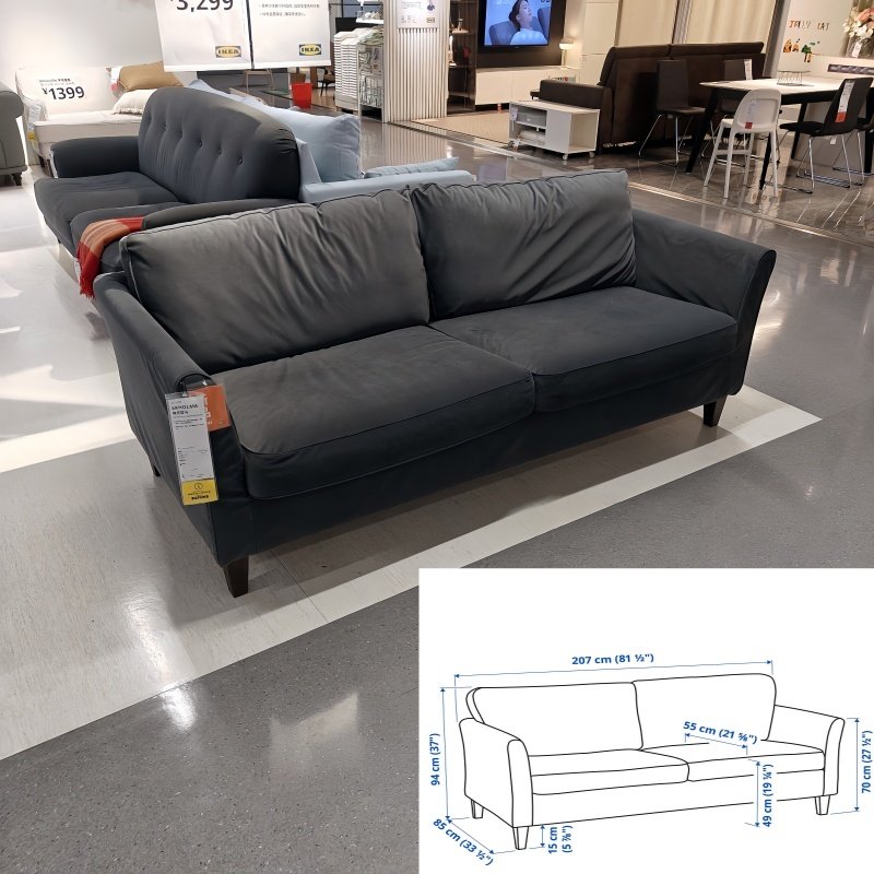 北欧宜家兰德克纳 三人沙发布艺沙发客厅简约小户型一字直排沙发