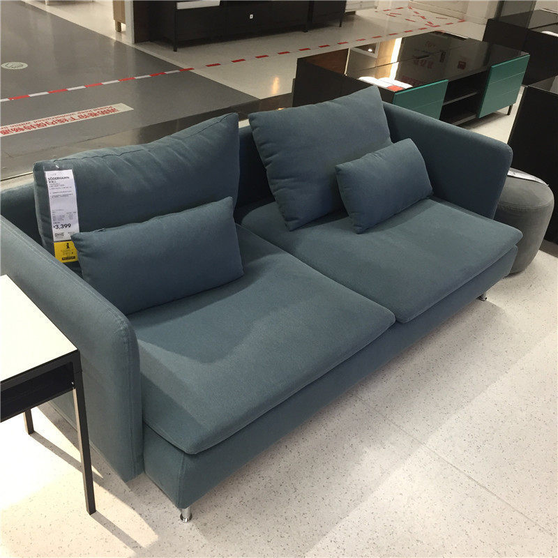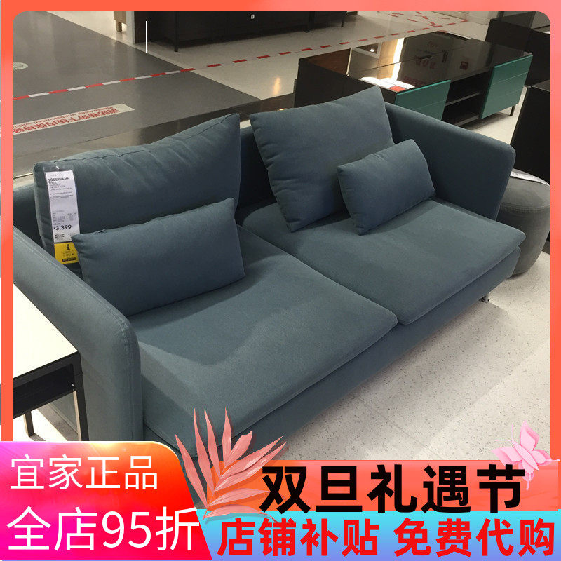 宜家索德汉三人沙发简约现代布艺会客小户型客厅懒人沙发国内代购