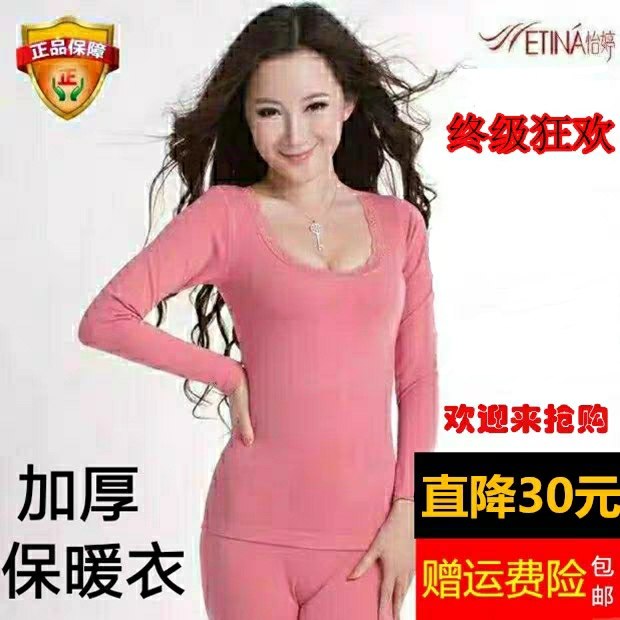 保暖内衣女纯棉加厚莫代尔套装大码怡婷1254性感女美体打底秋冬季