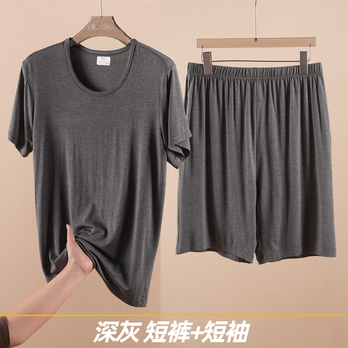 曼系【天然氧吧】睡衣女夏季薄款慵懒家居服高级感灰色莫代尔套装