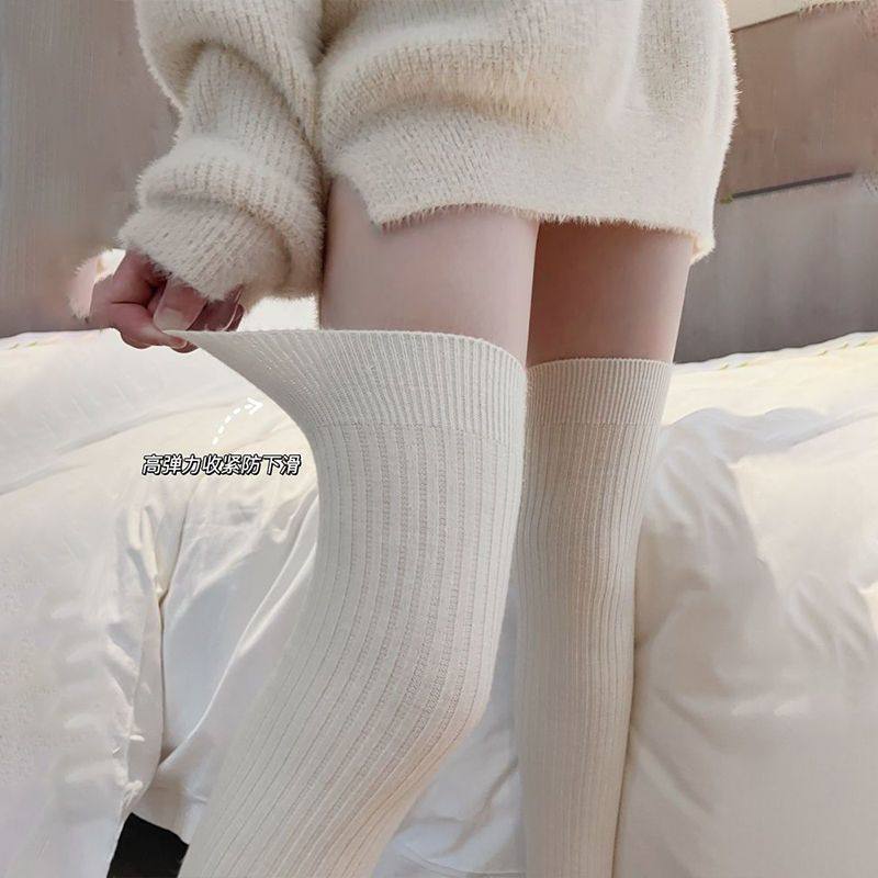 秋冬款保暖过膝袜纯棉袜女厚袜子日系长袜冬天高筒防滑纯色长筒袜