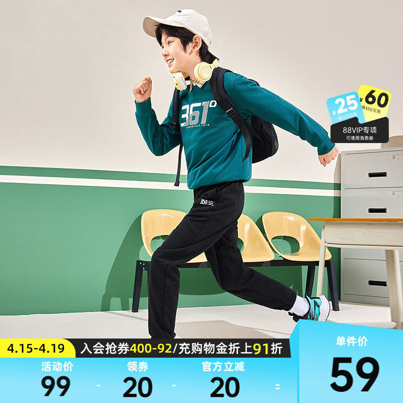 361°童装男童运动针织长裤2026春季新款中大童排扣保暖休闲裤子